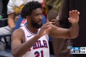 致敬前队友!恩比德末节坐在板凳上看队友追回16分拖进加时!