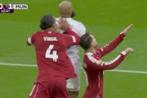 友军误伤😱范迪克争顶中肘击麦卡利斯特,之后曼联闪电进球